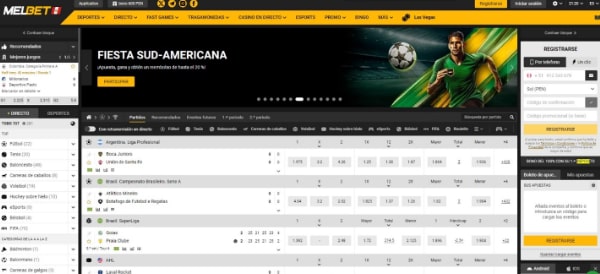 MelBet presenta un catálogo amplio y diverso de deportes, donde el fútbol lidera con eventos de la Liga 1, Liga 2, Copa Perú, Copa Libertadores y Copa Sudamericana, reflejando su atención a las competiciones más seguidas en Perú. Además, también puedes apostar en ligas internacionales populares como la Premier League, LaLiga, la Liga MX y la MLS, que cuentan con muchos seguidores en el país. Otros deportes destacados por el operador incluyen baloncesto, tenis, baloncesto, vóley y hockey sobre hielo, entre otros.