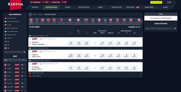 Si hablamos de variedad, otra forma para utilizar el bono Rabona o tus fondos propios en busca de las mejores apuestas en línea es el segmento de eventos en directo. La casa hace mucho énfasis en las apuestas en tiempo real, destacando los eventos en vivo disponibles con un menú dinámico en el que puedes explorar todas las opciones.